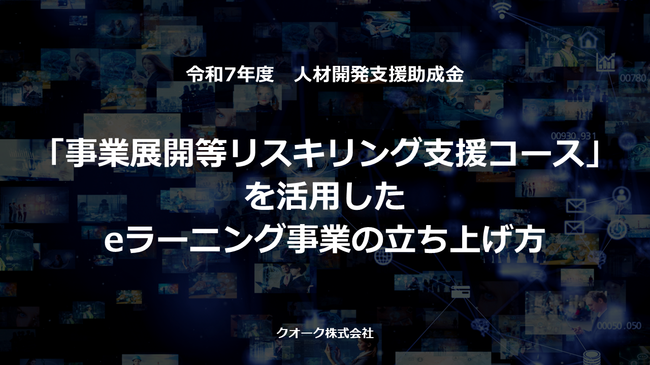 人材開発支援助成金・事業展開等リスキリングコースに対応したeラーニング研修を作成してQualifに載せて配信することで、新規事業としてeラーニング研修を提供するビジネスを展開できます。