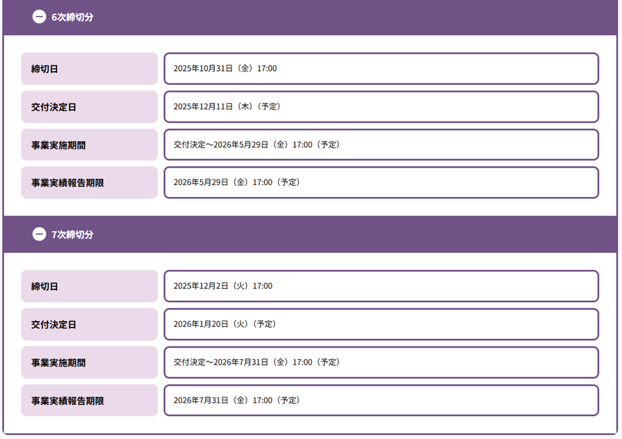 また、今年度の通常枠の申請は7次まで行われる予定で、最終の申請締め切りは12月2日です。利用する場合には忘れずに申請しましょう。