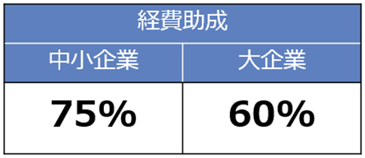 事業展開等リスキリング支援コースに対応した研修を受講した場合の経費助成率は、中小企業で75%、大企業で60%となっています。つまり、研修受講費用の75%が戻ってくるため、実質的な負担は25%だけとなります。
