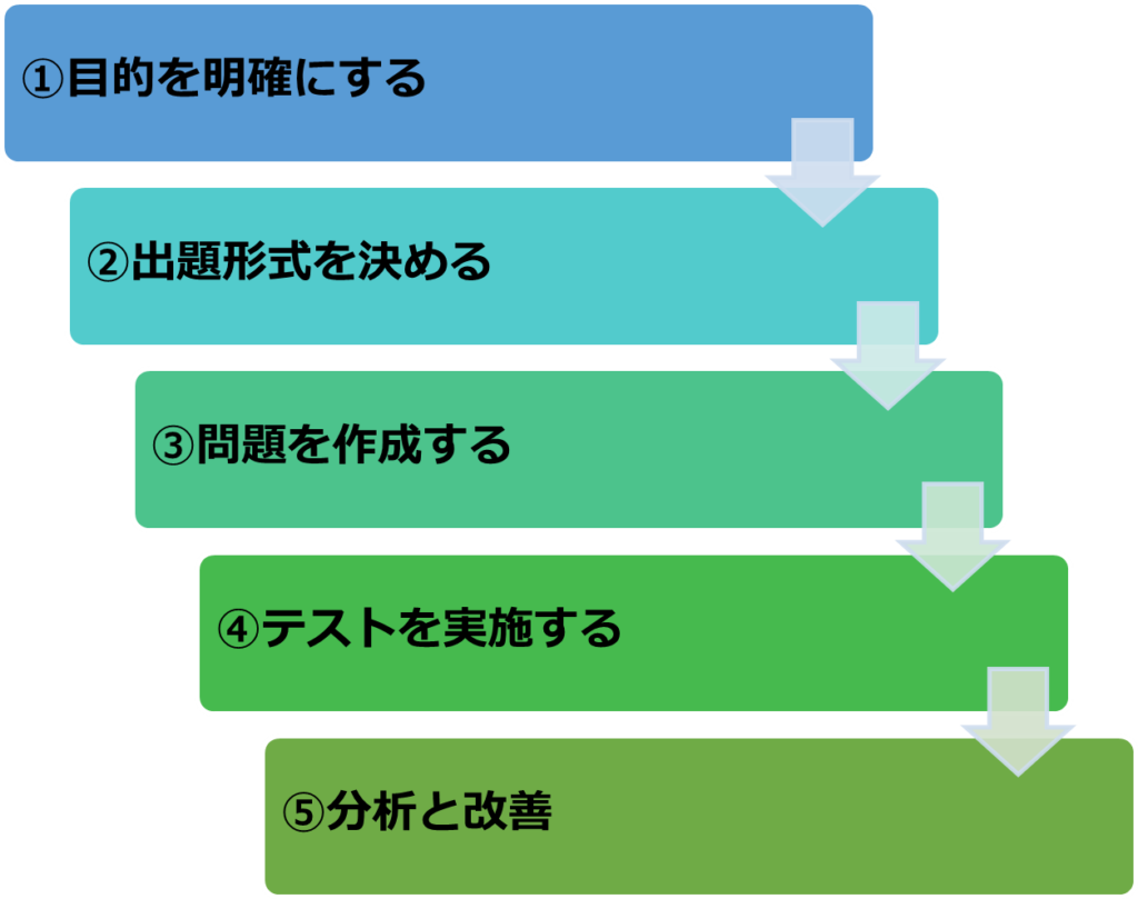 テストを受けることで受講者の何を評価したいのか、受講者に何を得てほしいのかをはっきりさせておきましょう。具体的な目標を設定することで、的確な問題が作成でき、評価基準が決まります。