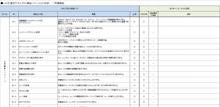 「LMSを選定するための機能比較リスト」を参考にしてください。