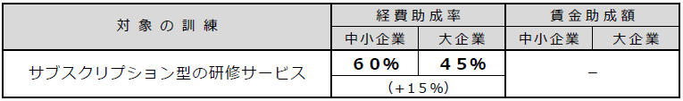 従業員従業員の方がサブスクリプション型(定額受け放題型)の研修サービスを利用した場合に助成します。 - 高度デジタル人材訓練・成長分野等人材訓練