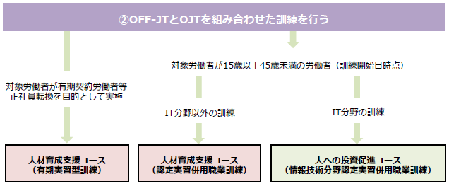②認定実習併用職業訓練:新卒者等のために実施するOJTとOFF-JTを組み合わせた訓練