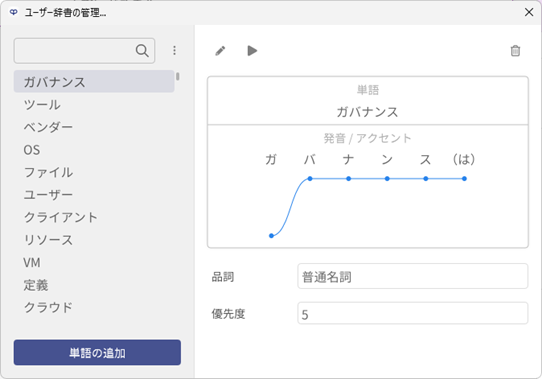 また、単語登録機能も持っており、専門用語などの読み方とイントネーションを登録することで間違えずに読み上げてくれるようになります。